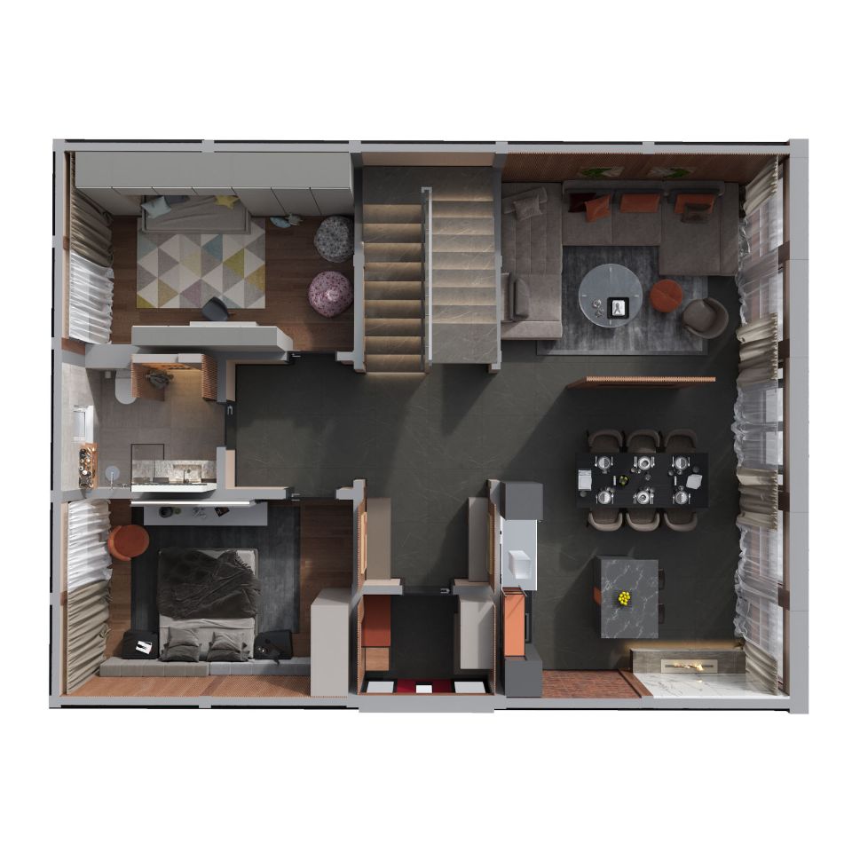 "BrillHouse Seven" готов распахнуть свои двери ценителям тонких деталей и подчеркнет статус хозяина. Полная заводская готовность всех строительных элементов позволит в короткие сроки собрать этот небольшой, но достаточно функциональный энергоэффективный дом. Конструктивные ноу-хау и полная продуманность закладки всех инженерных коммуникаций в каркас здания существенно сэкономят время на подбор оборудования, а автономная солнечная электростанция не только снизит затраты на электроэнергию, но и усилит независимость от внешних факторов.