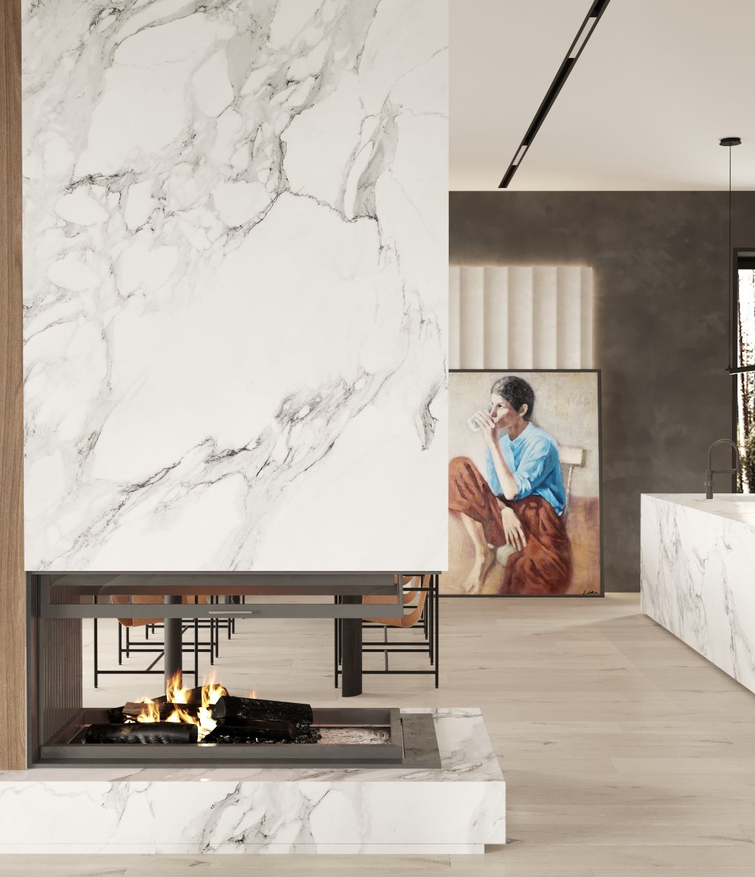 Основная идея - единение с природой. Дом находится в уединении, среди сосен, в котором будет проживать молодая семья с ребенком. В данном случае за основу был взят современный стиль с элементами минимализма. Основные материалы - дерево и камень. Цветовая гамма натуральных, природных оттенков.