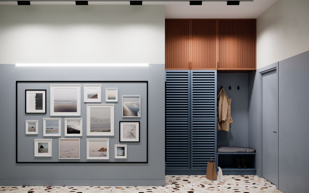 В коридоре выделена стена для фотографий семьи из многочисленных путешествий.
