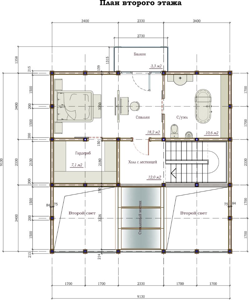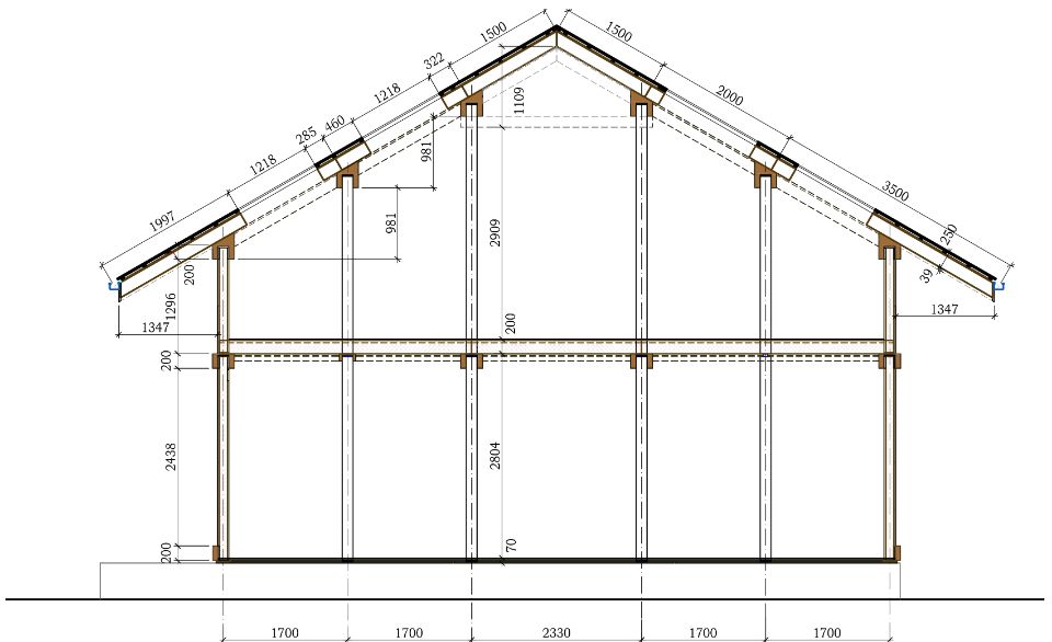 Балки перекрытия и крыши - высокопрочные клеёные крашеные П - образные несущие конструкции из LVL бруса.