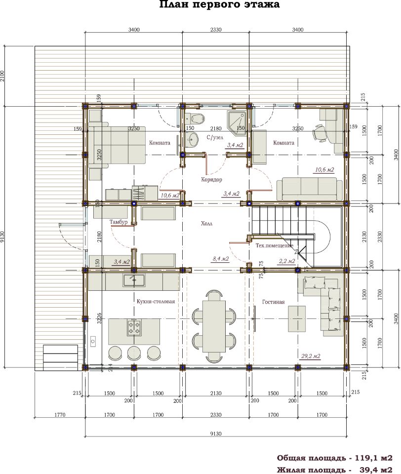 Благодарим за обращение в нашу компанию. Мы подготовили коммерческое предложение на строительство фахверкового дома, общей площадью: 119 м²