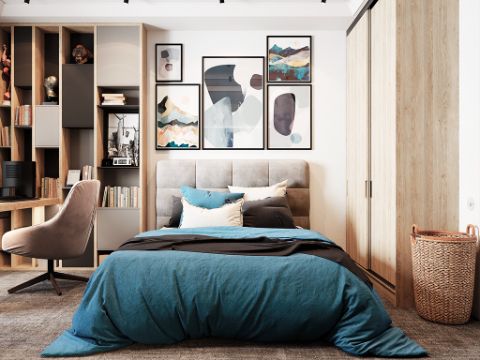 Для начала определитесь с планировкой спальни. Спальня сегодня это не только место для отдыха. Очень часто в спальне, особенно теперь в связи с пандемией, приходится работать. Именно поэтому удачным решением будет обустройство кабинета в спальне.